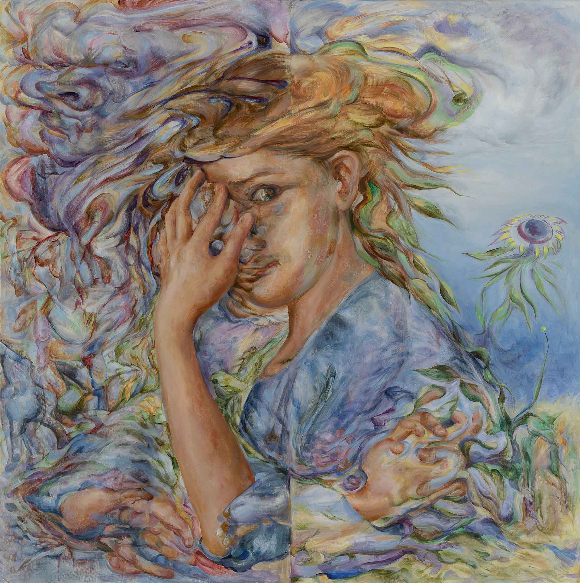 “Meat Suit: Section Blue takes Over”, oil on canvas, 68x60 inches, 2017