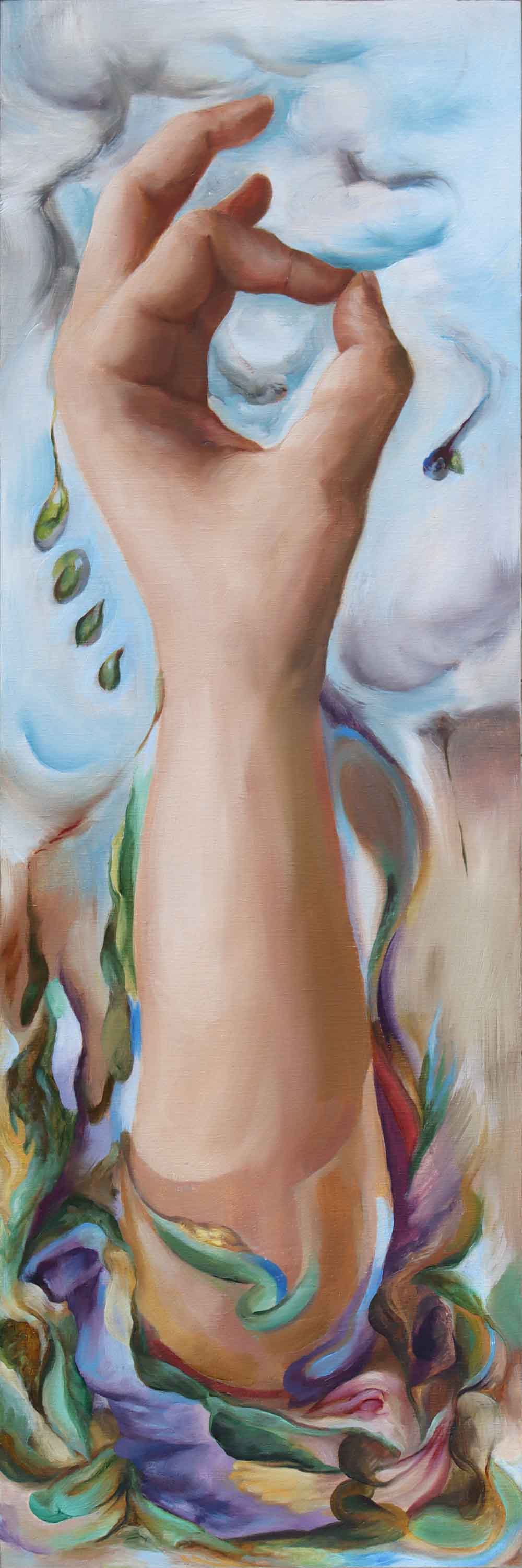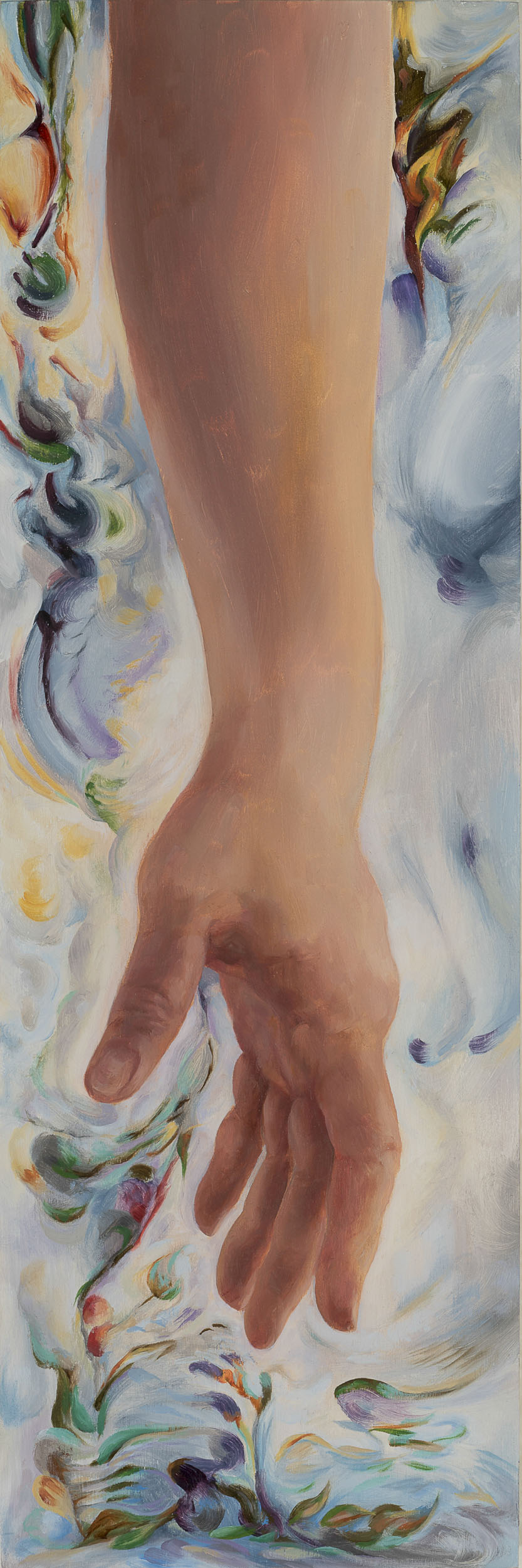 “Antidotes”, oil on board, 18x6 inches, 2025