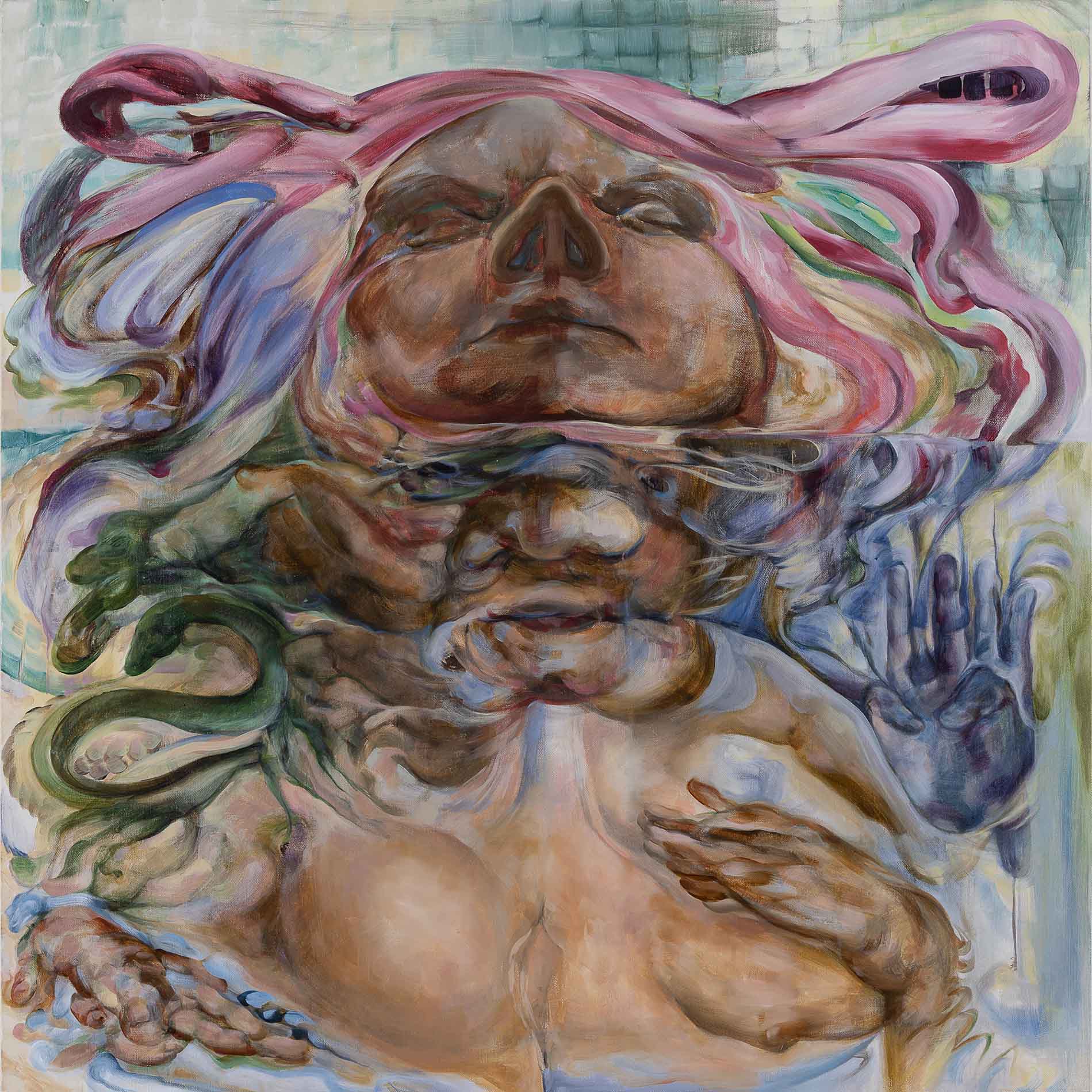 “Meat Suit: Section Blue takes Over”, oil on canvas, 68x60 inches, 2017