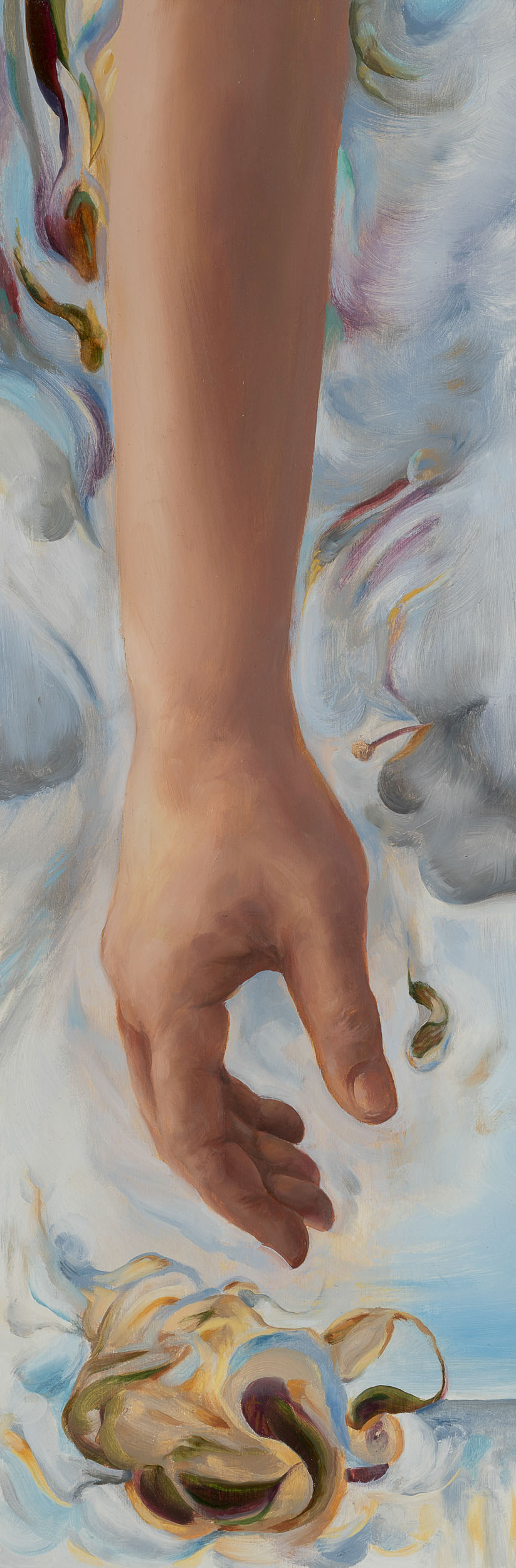 “Antidotes”, oil on board, 18x6 inches, 2025